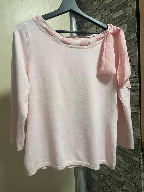 Приятная на ощупь: в составе вискоза с нейлоном, рукав три четверти, длина 53см, ПОГ 50см, ПОТ 46см, ПОБ 50см, линия плеча вместе с воротом 7см, плюс длина рукава с верхней точки 48см. Стан нового.