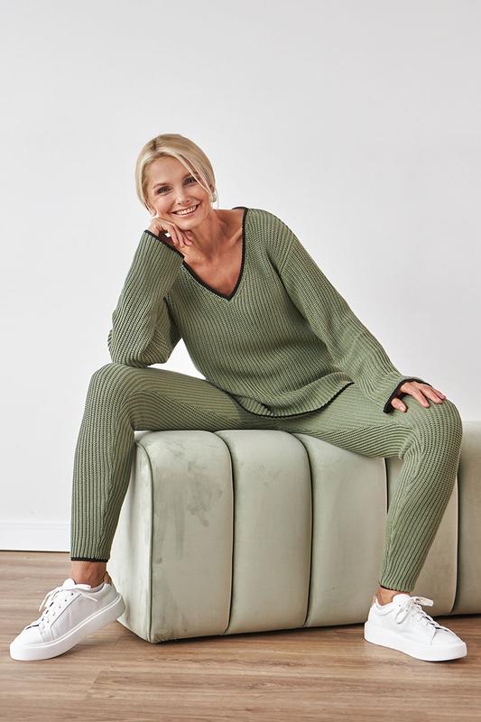 Джемпер с черным кантом выполнен из приятной на ощупь хлопковой пряжи в пластичном переплетении. Изделие имеет прямой силуэт и глубокий V-образный вырез горловины. Внесезонный джемпер для комплектов в городском и спортивном стилях. Длина изделия 64-73 см, ширина под проймой 44-53 см ❗ Дополнить образ 🤍 Брюки с первых фото есть в наличии! Покупая вместе получаете скидку!