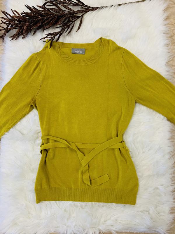 Джемпер ярко горчичного цвета, с поясом, приятен до тела