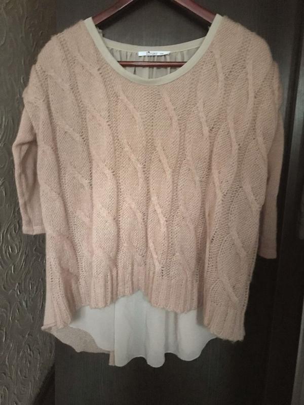 Покупайте Украинское! Итальянский стиль. Красивая стильная кофточка с комбинированным фасоном( ажурный вязаный трикотаж и шифон) пудрового цвета. Стильный фасон: вязаный короткий свитерок впереди,на шифоновой блузке,на спинке полочки завязываются бантом. На спинке подол блузки длиннее,а перед короткий,что подчеркивает фигуру и красиво смотрится, например с брюками. Размер указан S ,но подойдет на М Обязательно посмотрите другие мои лоты-возможно Вы найдёте то,что давно ищете.. И помните,что пока вы оставляете себе в "избранное" кто то покупает и Вы рискуете остаться без понравившейся вещи. Выгодно покупать несколько лотов-можно сэкономить на пересылке каждого. Доставка: Предоплата на счет, "Приватбанк"(по требованию) Доставку Вы можете оплатить самостоятельно при получении посылки на почте. После оплаты укажите на какой адрес выслать Вашу покупку, на чьё имя, и номер телефона на который нужно отправить уведомление о доставке на почту Вашего заказа. Отправлю посылку сразу же после поступления денег на счёт. Наложенным платежом и "безопасной оплатой" НЕ ОТПРАВЛЯЮ!