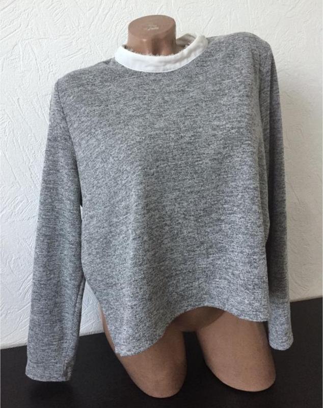 Укороченная ровного кроя кофточка.Комерец потрепан такой задумка. Бличные разрезы по бокам.С нюансов только внутри отрезанный шифон, носка никак не влияет.В целом состоянии очень хорошее. Подойдет р. 40 Плечи-39 см Пог-55 см Дл-51 см Рукав-61 см