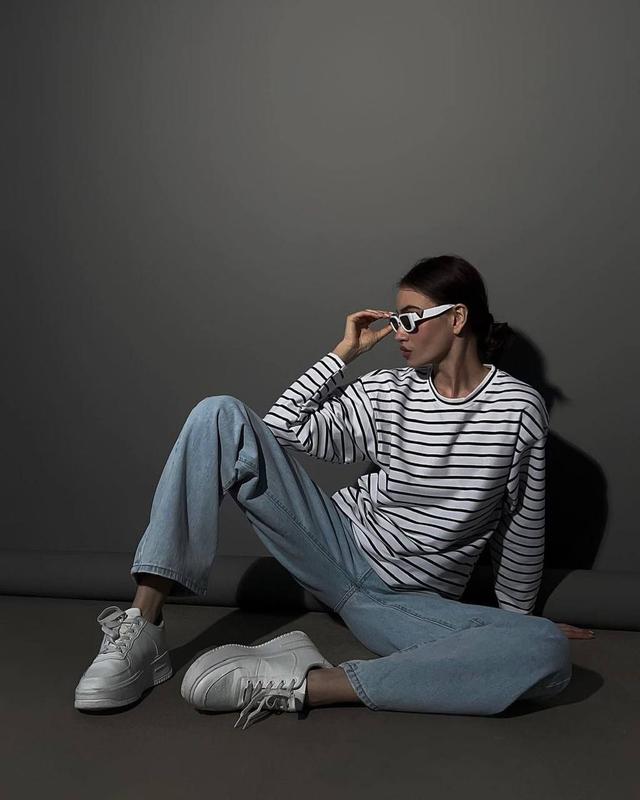 Мод. 404 lu ▫️ Ткань: вискоза Турция ▫️ Размер: 42-46 Топ в полоску – то уже классика в современном гардеробе. Незаменимая вещь для базового лука. Модель oversize, отличное качество ткани. ➖ Замеры: ОГ 100 см Длина рукава от шей 69 см Длина по спинке 66 см