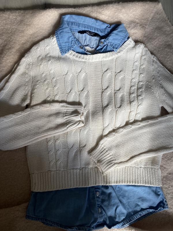 Кофта-сорочка-джинсовка Фірми - new look Ідеальна Біла в’язана кофта з доповненням джинсової сорочки - їдеальне 👌🏻 Розмір с-м