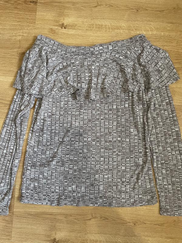 Кофта с воланом на плечах. Очень эластичная. Состав вискоза,эластан, полиэстер.Производитель Украина. Размер 52-54. Длина 60 О.г48 Низ 49