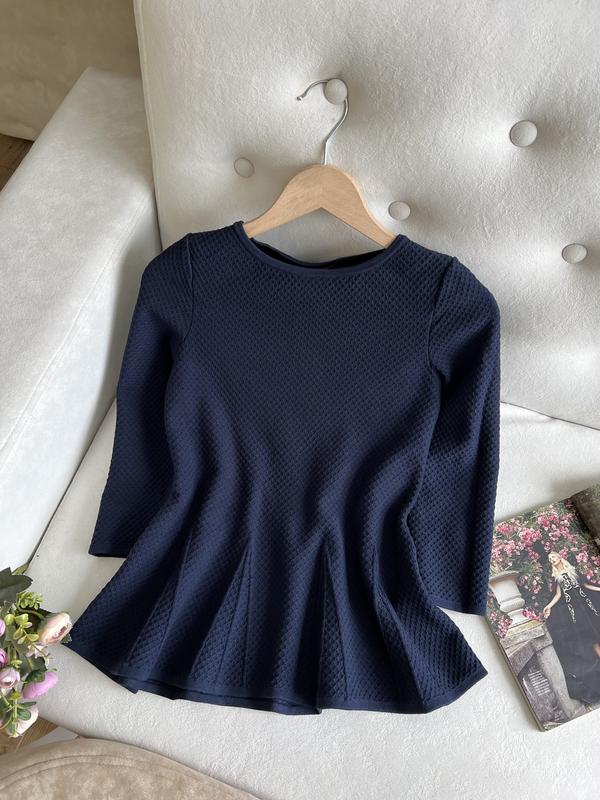 Структурная Кофта темно-синего цвета бренда Hugo Boss. Ткань мягушка и приятная к телу. Удобная, тянется. Идеально сидит по фигуре. Размер по наборке М. Замеры: 1/2 ОГ 40-47 1/2 ОТ 39-47 Длина 60 Рукав 49 Плечи 32-40 Состав: 70 вискоза 30 полиэстер