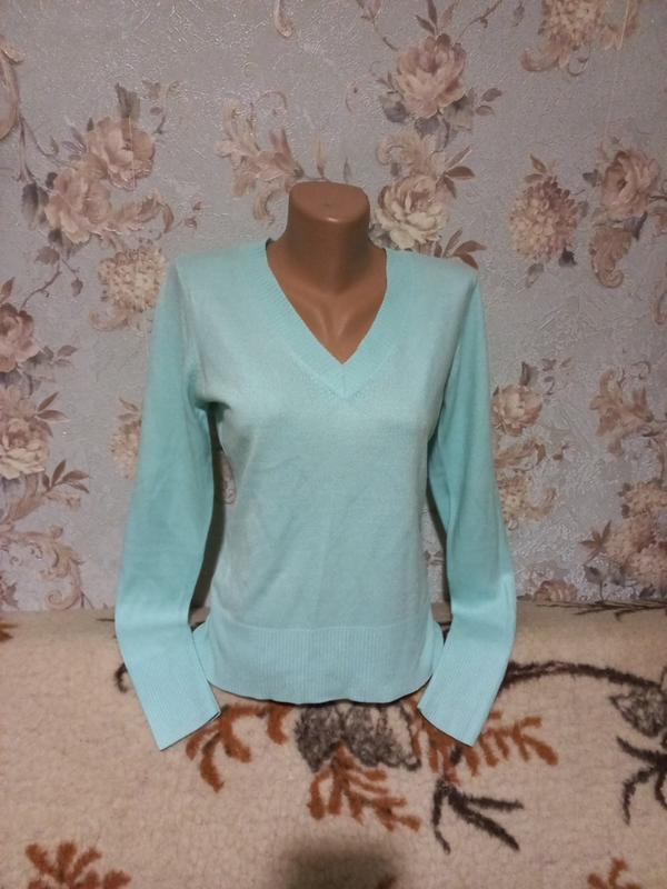 Приятный мытный цвет. Камера не передала точно. Хорошо садится по фигуре за счет высокой резинки по низу и на рукавах. Длина 58см, плечи 37см, пог 44см, рукав 67