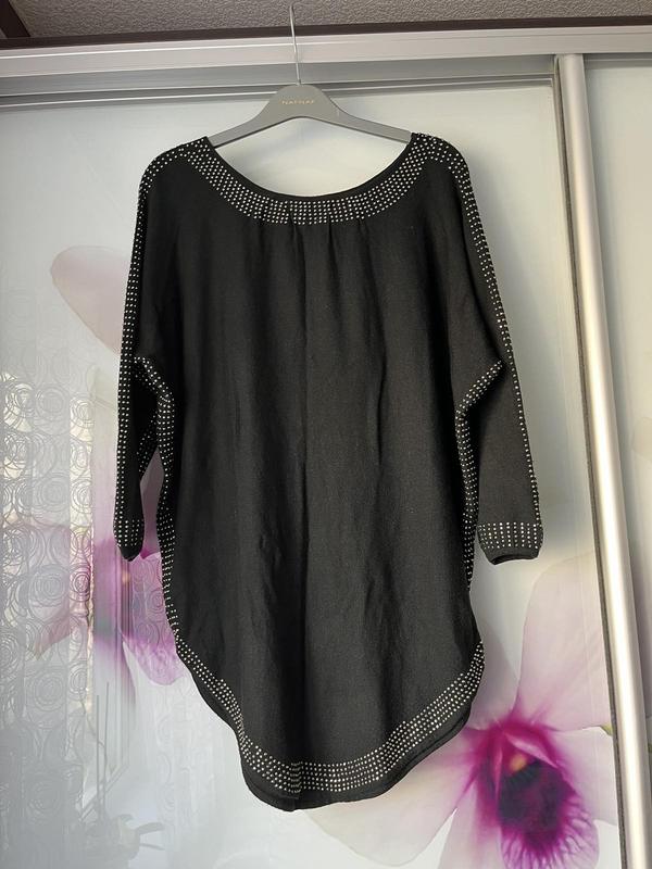 Кофта нарядна. Черная. Рукав 3/4. Фасон летюча миша. Седает по фигуре шикарно. Состояние новой. Мягкая приятная к телу. В составе кашемир/ шерсть/полиамид. Размер L-XL