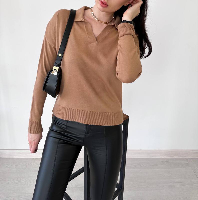 Джемпер с воротником Идеальная база на каждый день Тонкая машина вязки Размер: универсальный Склад: 70% акрил, 30% бавовна. Производитель: Турция.
