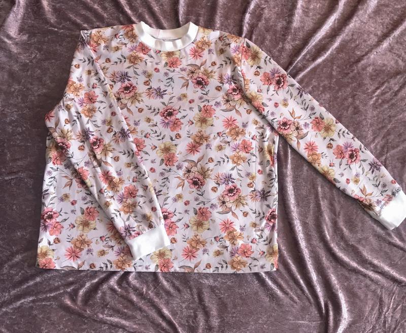 Очень красивый и качественный джемпер. Ткань Турция, двухнить петля, печать принтов дижитал. То есть не потеряет цвет присборенные. Манжеты кашкорсе, хорошо стираются и приятны к телу. Шея по вашим меркам. Хорошо тянется.