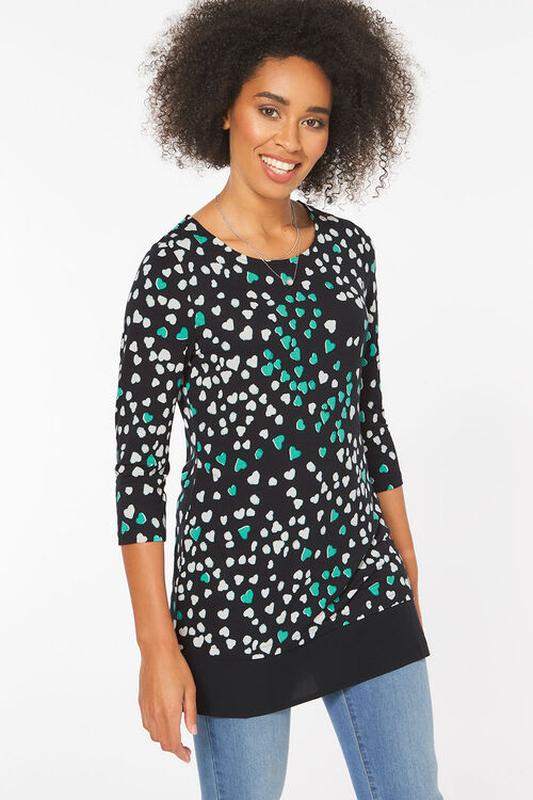 Легкий свитер/джемпер черного цвета с принтом абстрактные сердечки Bonmarche. Превосходное качество – 95% вискоза. Интересный крой, немного оверсайз и модный в сезоне принт у сердечка. По краю свитера легкая полоска легкой шифоновой вискозной ткани (фото 3) черного цвета. Хорошо садится на размер 20 UK или 48-50 EU. Принт в сердечках – это настоящий микротренд этого весеннего сезона. Состояние отличное, без дефектов. Размеры: длина переда 85 см пола обхват груди 67 см длина рукава 52 см Доставка по Укрпочте или Новой почте. Предоплата на карту Монобанка Обмен и возврат вещей не предусмотрен