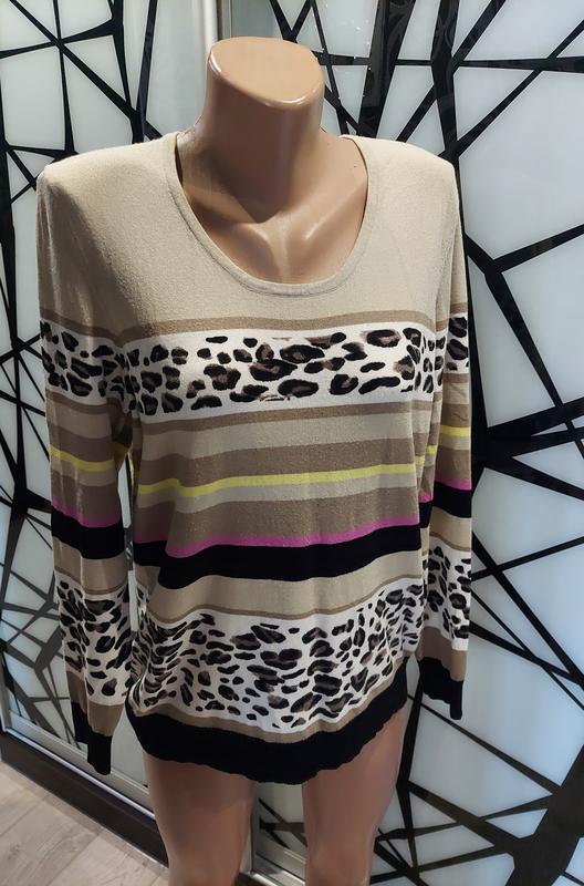 Яркий джемпер, кофта frank walderв цветную полоску с леопардовыми вставками 48-50