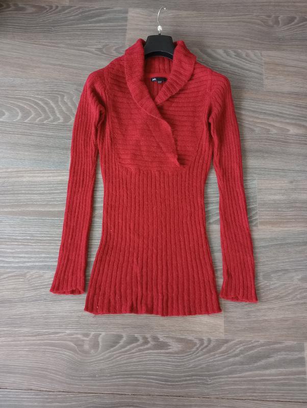Бордовая теплая мохерная ( 15%) кофта туника; jsfn; xs/s