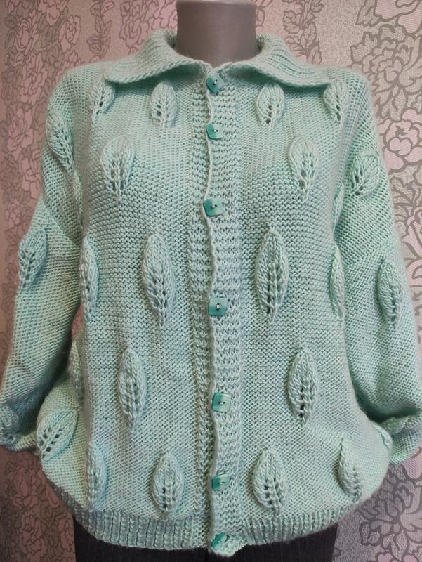 Шикарная кофта-кардиган ручной работы из натуральной шерсти. Идеальный весенний вариант. 3D орнамент. Очень стильная и актуальная модель в этом сезоне. Мягкая, приятная на ощупь "не кусается" Рукав объемный, линия приспущена, стиль оверсайз. Стан идеален (как новая) Размер около 44-46-48 Замеры: -----длина 62 -----рукав от воротника 73 -----ОГ 106 -----ОТ 104 Тянется