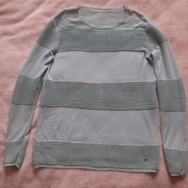 Кофта летняя из эластичной ткани красивого ментолового цвета ( телефон не передает). Есть небольшие пятнышки, которые можно удалить- фото добавила. Плечи- 46 см Рукав- 66 см ПОГ- 55 см Длина- 68 см