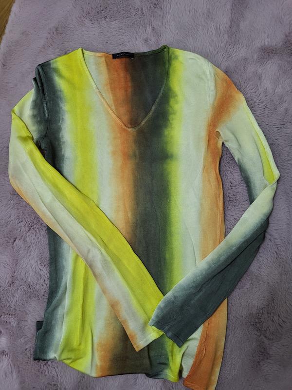В очень хорошем состоянии.яркая и красивая вещь на весну лето осень)На С -М.длина 67,рукав 65,подмышками 40,плечи 36.Отправка Новой почтой после оплаты на карту