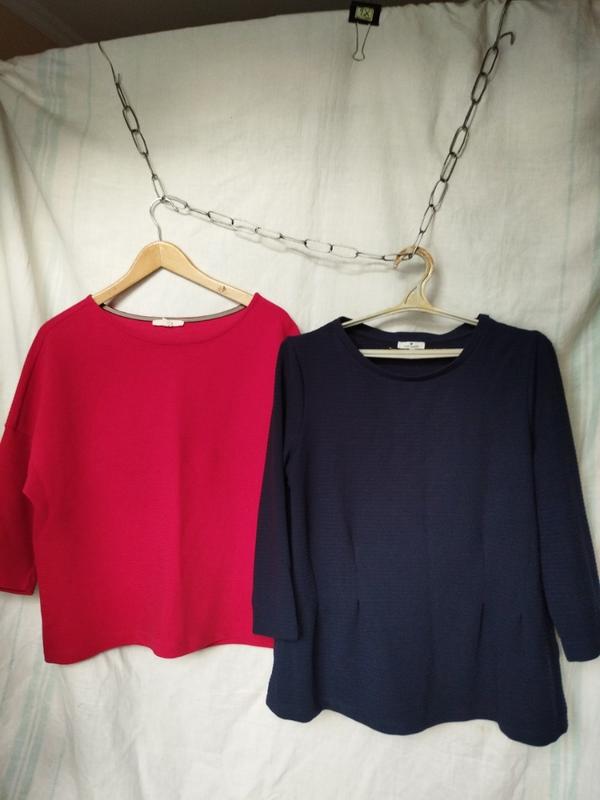 Стильные кофты,мой, 52 размера.Котон с полиэстером.Красная ОГ 120,длина 62,рукав 40. Синяя ОГ 106,рукав 50, длина 65.