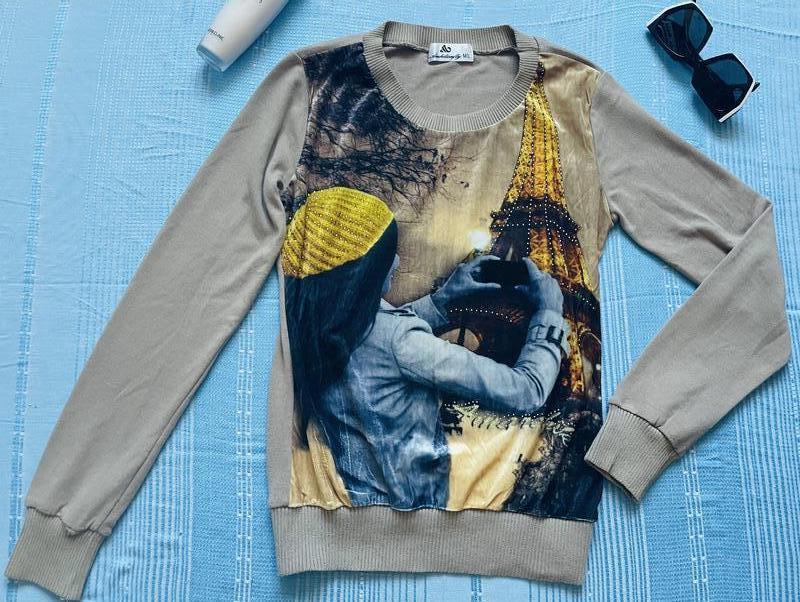 Красивый пуловер с принтом, состояние нового, надела 1 раз👛 60% коттон , 35% полиэстер, 5% эластан Размер М/L Длина - 60 Рукав - 61 ПОГ - 41 ПОТ - 34, резинка, тянется