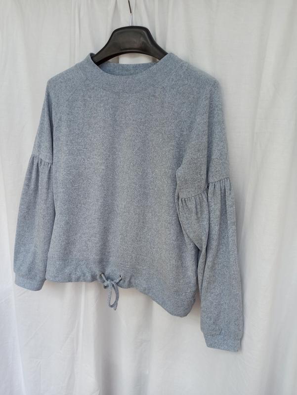 Джемпер со сборкой на рукавах. Рукав - реглан. По низу на манжете и может стягиваться шнурком. Очень мягкая и приятная ткань на ощупь. Размер М Замеры: Длина - 57 Длина рукава от горловины - 69 Ширина по груди - 59 Ширина по талии - 56 Ширина по низу - 54