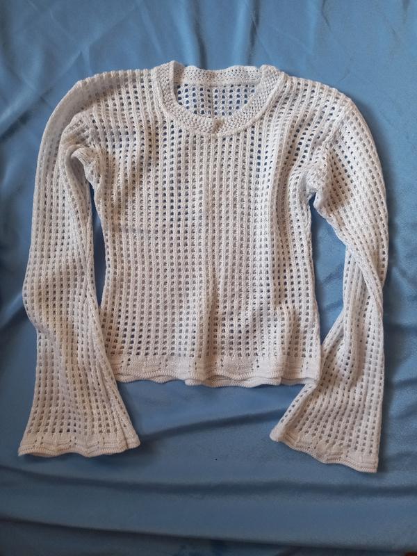 Вязаная катышка. длина 49 см. рукав 52 см Пог 32 см На ощупь приятная. Состав не указан.