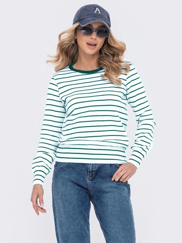 В'язаний джемпер прямого крою з контрастною горловиною. розмір:42-44,46-48, 50-52 довжина виробу - 59 см довжина рукава - 60 см Склад: 80% бавовна‼️, 20% поліестер Розтяжність: злегка тягнеться (2-3 см) Колір: білий,зелений, бежевий Матеріал: Бавовна арт24287