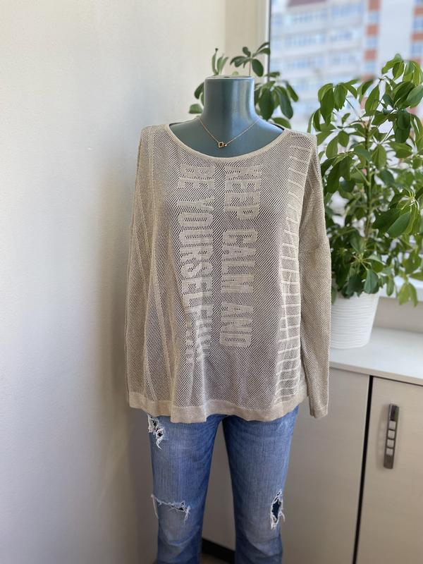 ☘️Очень классная, стильная оверсайз-кофточка. Размер L-XL. Длина 54см, длина рукава с плечом 64см, ПОГ 71см Состояние новой вещи, качество отличное. Кофточка в мелкую сеточку бежевого колючего с серебряной ниточкой, очень красиво выглядит!