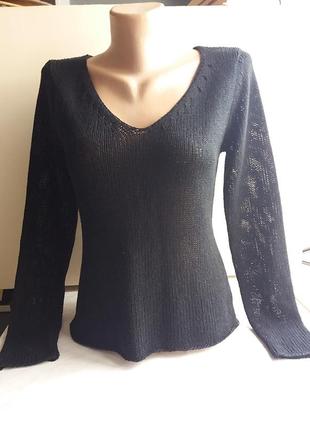 Кофточка вязаная фирмы "XIAO CAO", р.M-L, этикетка с составом материала отсутствует, по ощущению, пряжа хлопковая с какой-то добавкой. длина рукава 64 см, длина кофточки по спинке 55 см. В хорошем состоянии.