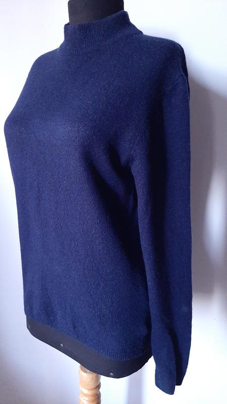 Джемпер з вовни меріносу 100%, теплий, м'який, тоненький. Розмір М-Л. Заміри: від пройми до пройми-48 см, довжина рукава-63 см, довжина по спині-62 см, висота стійки-5 см. Дуже якісна річ.