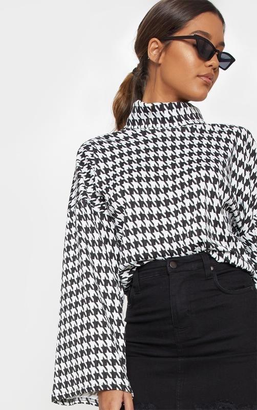 Джемпер широкий рукав. кофта с горловиной принт гусиные лапки