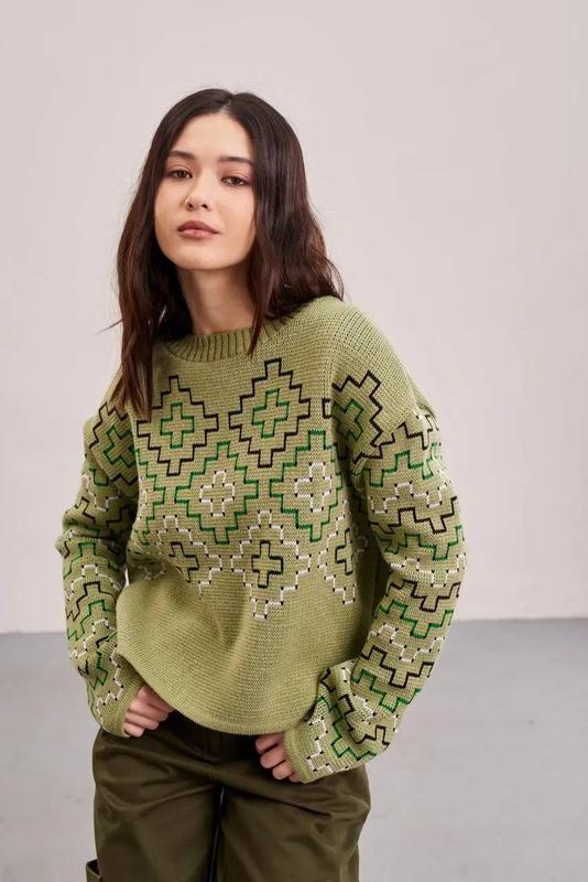 Джемпер "West" (оливка) Розмір універсальний 44-48 Склад - 50% акрил, 50% вовна Ширина по грудях - 56 см Довжина по спинці - 54 см Довжина рукава від горловини - 72 см