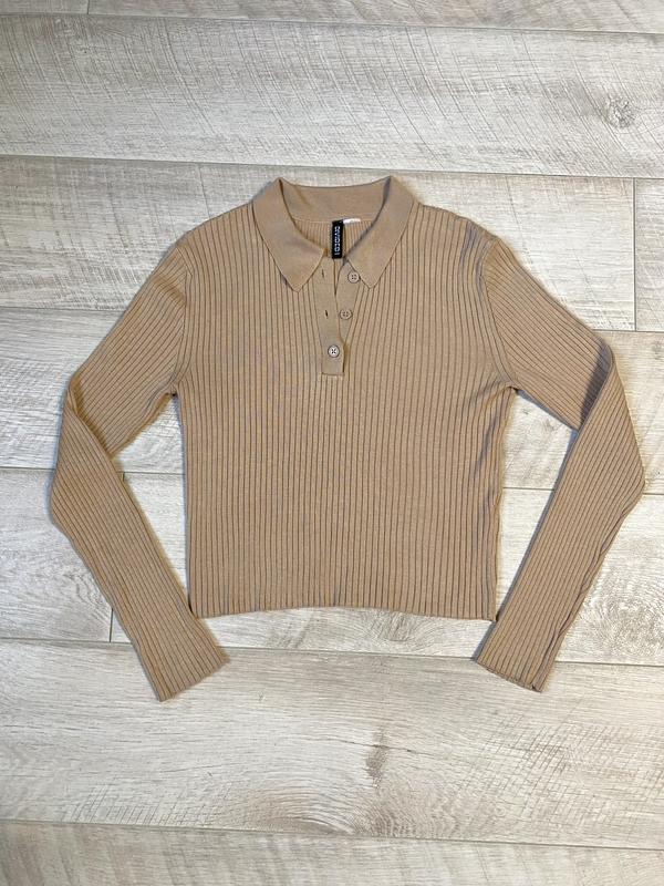 Кофта в рубчик с воротником Ткань легкая и мягкая, легко тянется Замеры: -плечи 43 см -длина рукава 63 см -длина изделия 50 см Одето на размер С