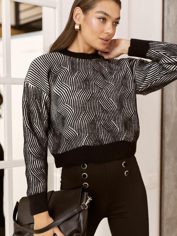 Джемпер свободного кроя с контрастной вязкой. Низ, горловина и манжеты связаны резинкой. Размер единственный: 42-46 Доставка: 💙 Укрпошта (повна передплата) 💛Новая Почта (полная подписка или накладной платеж с частичной подпиской) ✨Отправка 2-3 рабочие дни 🌿Есть возврат и обмен