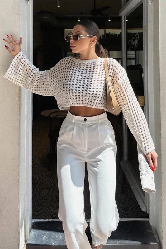 🔝🔝Хіт продажів 🔝🔝 Трендові кофтинки в дірочку (без топу) ▫️Чорні та молочні ▫️Висока фабрична якість,Туреччина 🇹🇷 ▫️Розмір єдиний ▫️Ширина 51 см Довжина 28 см Рукав від горловини 63 см