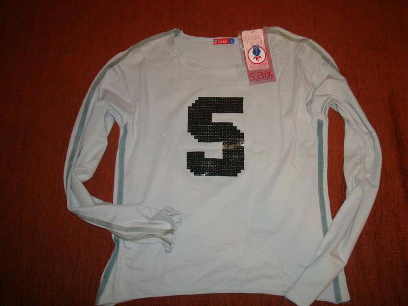 Новый брендовый свитшот S:aix. Размер указан L, на наш 44-46, ориентируйтесь на замеры. Состав 96 % хлопок и 4 % эластан. Длина от плеча 57 см, ширина под рукавами 45 см, в талии 42 см, снизу 45 см, рукав 63 см. Мне при росте 164 см рукав немного длинноват. Цвет серо-голубой.