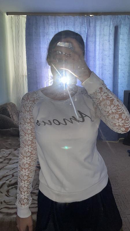 Очень нежная кофта с кружными рукавами, принт на груди. Б/у в идеальном состоянии.