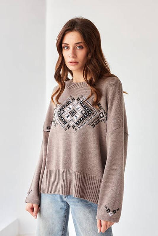 Розмір універсальний 44-50. Склад - 50% акрил, 50% шерсть. Ширина по грудях - 60 см. Довжина по спинці - 60 см. Довжина рукава від горловини - 67 см. допустима похибка +-2 см.