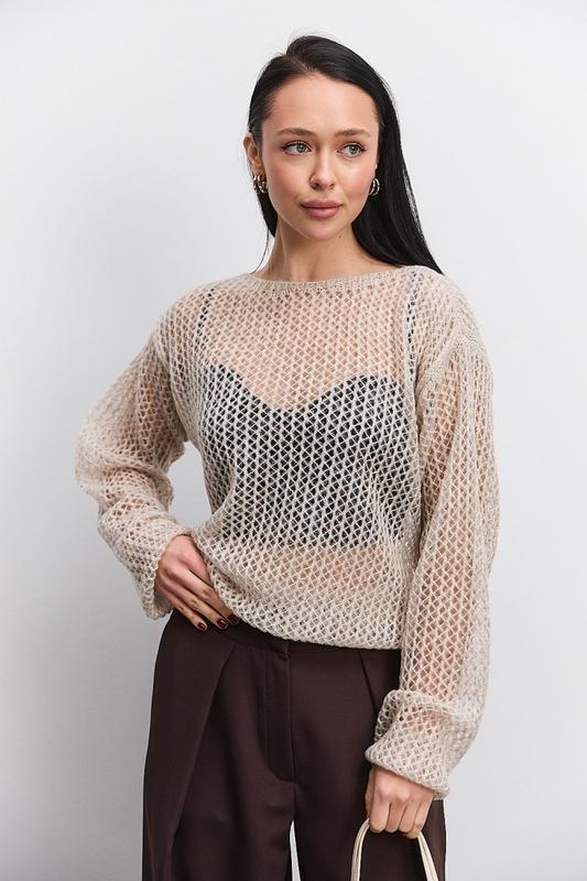 Модель повністю виконана з м`якої ажурної в`язки, що створює ефект павутинки. Виріз горловини човником, а прямий низ та довгі рукави внизу зібрані на вузьку гумку. КОЛЬОРИ: персик, молочний, беж, чорний, св-блакитний, сірий Пряжа 76% поліестер, 24% акрил Довжина виробу 50-52 см Довжина рукава 53-55 см Ширина під проймами 55-57 см Примірок немає. Самовивіз у м. Хмельницький після повної оплати. Приймаю повернення за умови збереження товарного вигляду та доставки-за Ваш рахунок. Або обмін на інший розмір за умови наявності. Відправлення укрпоштою та новою поштою (накладний або повна передоплата) Ціна остаточна. Дякую за розуміння. 200278