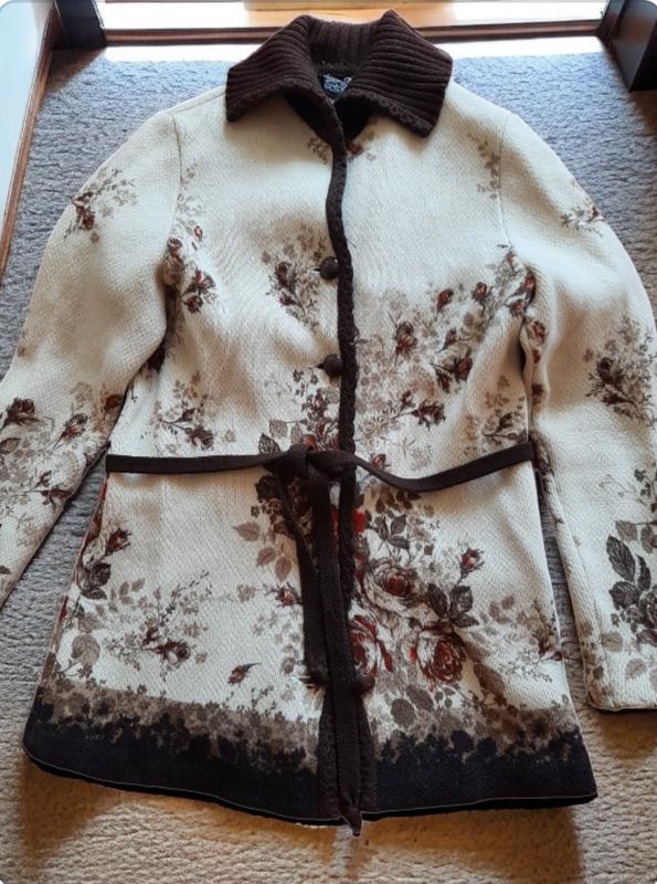 Женская кофта из натуральных нитей, мочекка, макает свой поясок.