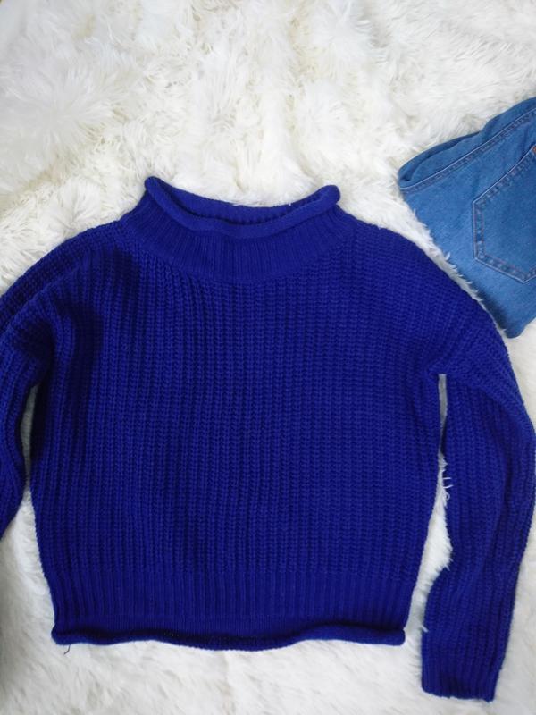 Крутий укорочений топ ATMOSPHER, колір насичено синій, дуже яскравий, до високих джинсів супер!!! Р.36, ПОГ 50,низ 39, довжина 45.Стан ідеальний