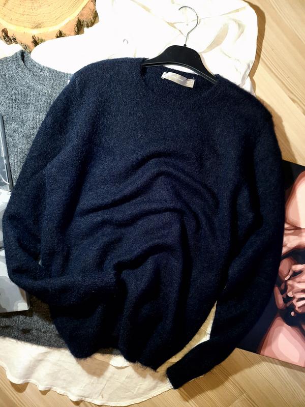 Теплый джемпер махер (S-M) Темно синий Длинна от ворота/плеча 63/60 см По плечам 40 см Ширина под ручками 51 см Ширина внизу резиночки 42 см Рукав от ворота/плеча 76/62 см Состояние как новый
