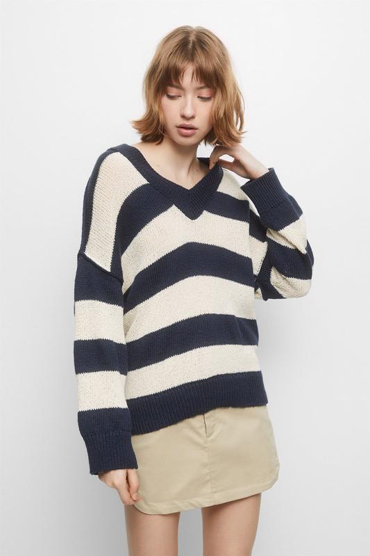 Полосатый свитер оверсайз с v-образным вырезом pull&bear - xs-s, m-l