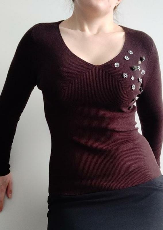 Приятная к телу кофточка, свитер, джемпер с V-образным вырезом. Цвет горький шоколад. Декор-пришитые бусины, можно снять при необходимости. Горловина V-образная, удлиняет шею. Базовая вещь, всегда актуальна. Размер универсальный, тянется. Длина 57 Плечи 38-45 Рукав 63 Пог 45, тянется до 54 пот 37-45 низ 39-52 Для корректного понимания как сядет вещь замеры сравнивайте с подобными своими вещами. Распродаю гардероб. Смотрите все мои объявления. Подписывайтесь чтобы видеть обновления и скидки. Ставьте ❤️, кладите вещь в корзину, чтобы не потерять.