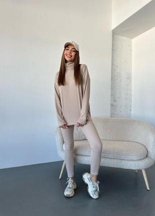 🔴🟠🔴🟠🔴🔴🔴 ФОТО РЕАЛЬНЫЕ 💯 КОСТОЙМ С НАЧОСОМ ✨✨ 🟣Размеры: 42-44, 46-48 🟣Цвет: светлый беж, мокко, серый, черный 🟣Ткань: качественный рубчик с начесом с  изнанка Описание: Костюм кофта + лосины из приятной к телу ткани - рубчик с начесом. Кофта с комфортным воротником-стойкой, по бокам разрезы. Лосины с высокой посадкой без боковых швов, на талии резинка. Удобный и комфортный костюм на каждый день. Базовый выбор цветов💗