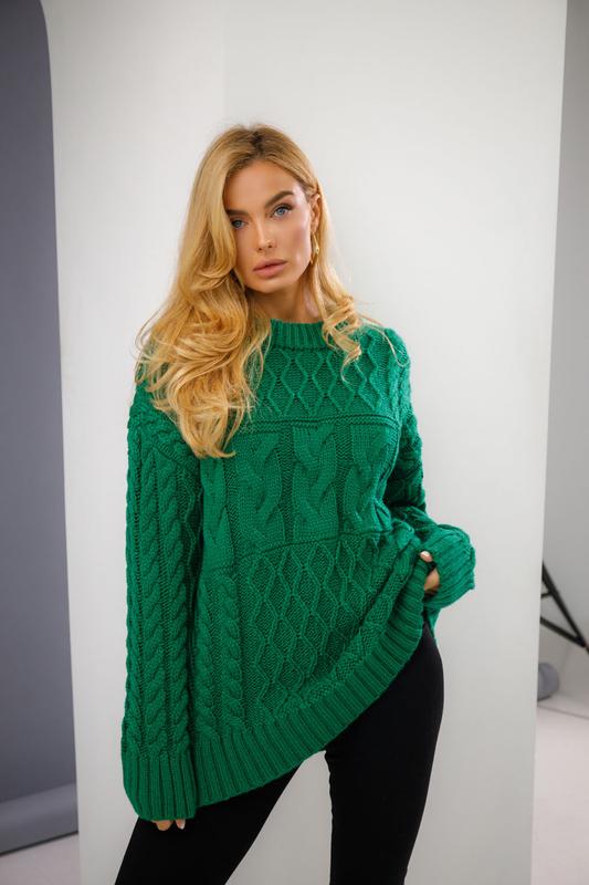 💛💙ДЖЕМПЕР 2716💙💛 Стильный удлиненный джемпер из полушерстяной приятной к телу пряжи. Комбинированный узор - изюминка изделия для создания образов в стиле кэжуал. Длина изделия около 70 см (+- 2 см), ширина изделия 60 см. 📐42-52 🌈жемчужина, зеленый, терракотовый