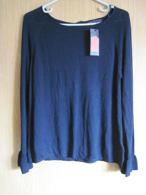 Новый стрейчевый джемпер Англ. р-р 12. Состав 50% вискоза 50% акрил. Цвет - синий. Материал отлично тянется. ПОГ-53 см. ПОТ-57 см. ПОБ- 59 см Длина 65 см Рукав 73 см. от горловины. Все на фото. Английский сток.Обмена и возврата нет. Доставка комбинируется. 201.