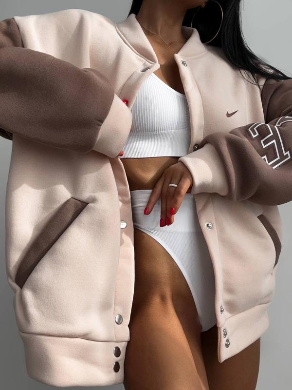 🥀Новинка🥀 Ткань: Трехнит на флисе Цвета: черный, бежевый Размер 42-46 Oversize Бомбер в стиле Oversize, уже покорил все модные тенденции и включен в стрит стайл Лука, а также повседневные образы. Фурнитура Серебро. Все надписи как на фото - качественная накатка. Есть кармашки. Высокое качество пошива.