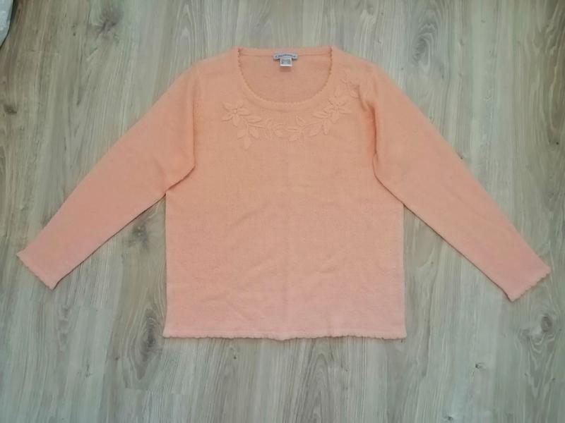 Кофточка деми в идеальном состоянии, мягкий , не кричащий абрикосовый цвет. Вышивка. длина по спинке 63, пог, 54, пот 52, низ 53 см.