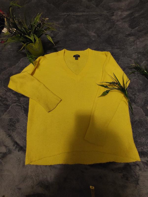Мягкий очень приятный на ощупь,солнечного цвета свитерик оверсаз Длина спереди 63, сзади 66 Плече спущене 22 Рукав от плеча 45 Есть следы носки, но в очень хорошем состоянии в цене учётом, а фото стана видно