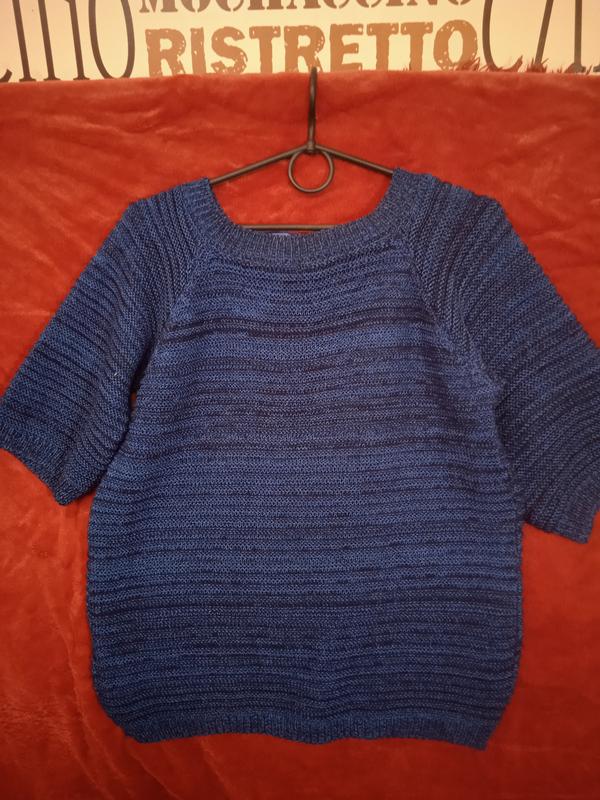 Очень красивая теплая и милая кофточка из меланжжа сине черного цвета на спине вырез капелька с атласным бантом рукава 3/4 Длина 60 Длина рукава от шии 36 НПОГ 46 НпОС 46