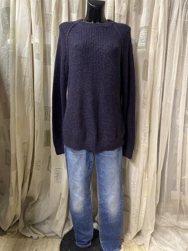 Шикарный качественный джемпер от REISS. Цвет темно-фиолетовый с добавлением металлизированные нити красного цвета. Рукав-реглан. Размер по набору-М. Замеры:длина-72 см, ПОГ-49 см, ПОБ-47 см, рукав-реглан от ворота-81 см. Бирка со составом срезана, но точно шерсть. Унісексі!