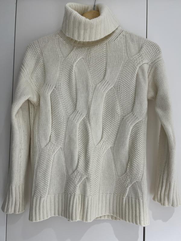 Джемпер бренда Massimo Dutti очень теплый, с отличным составом (44% шерсть ) Молочного цвета с вязкой в косы Длина 63 Рукав 66 от горла Ширина 52